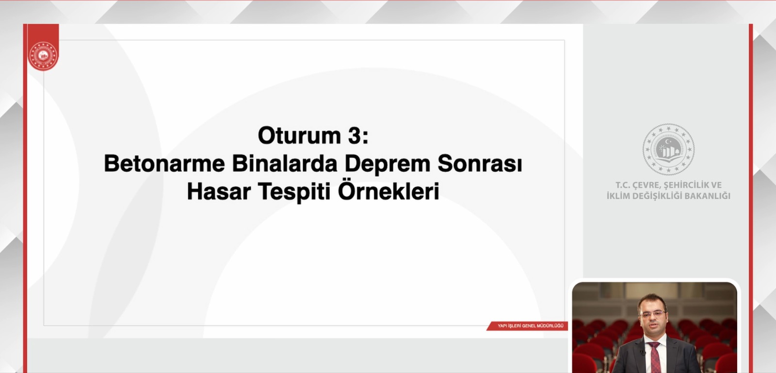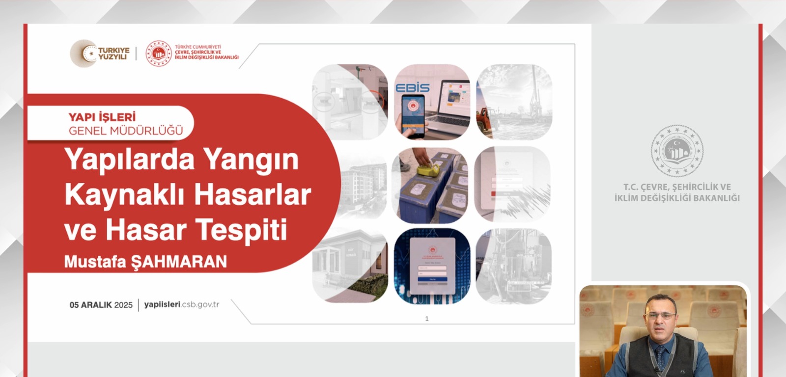22.06.2025 tarihli ve 32934 sayılı Resmi Gazete’de yayımlanan ‘’Afetler Sonrası Bina Hasar Tespiti Yapılmasına İlişkin Genel Kurallar Hakkında Yönetmelik’’ eki deprem, sel ve yangın afet olaylarına yönelik Genel Müdürlüğümüz uhdesinde, Bakanlık Eğitim Yayın Dairesi Başkanlığı’nın koordinesinde, İTÜ ve Hacettepe Üniversitesi akademisyenlerince uzaktan eğitim şeklinde E-Devlet kapısı üzerinden sisteme yüklenen eğitimler tanımlanan 29000 kişilik İnşaat Mühendisi, Mimar ve İnşaat Teknikerlerine verilmeye başlanmıştır.
